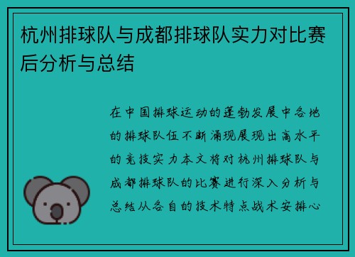 杭州排球队与成都排球队实力对比赛后分析与总结